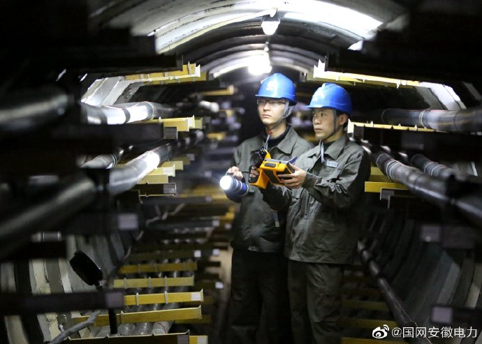 圖為:國(guó)網(wǎng)合肥供電公司利用科技設(shè)備對(duì)地下高壓電纜特巡