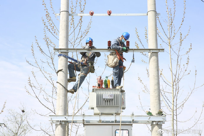 【快速增容配變 保障百姓用電】4月13日,國網單縣供電公司組織施工人員為蔡堂鎮(zhèn)姜馬莊村變壓器進行增容改造,施工人員僅用6個小時時間就為該村新增400千伏安變壓器一臺,架設導線800余米。改造完成后,大大縮短了供電半徑,提升了該村電能質量,保障了全村百姓可靠用電。 ????