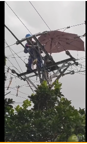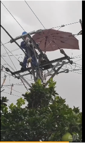 8月12日,國(guó)網(wǎng)廣安供電公司華鎣供電分公司中和供電所員工們?cè)?0KV中臨線羊頭壩村5號(hào)臺(tái)區(qū)2號(hào)桿“電桿上撐傘改負(fù)荷”,確保客戶穩(wěn)定可靠用電無憂。