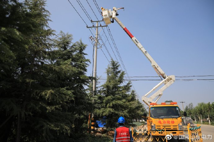 梁山縣供電公司員工正緊張地開展帶電作業(yè)