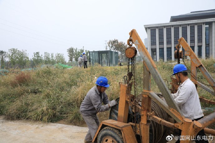 【加快電纜敷設(shè) 服務(wù)客戶用電】10月9日,國(guó)網(wǎng)梁山縣供電公司員工為梁山縣文化中心敷設(shè)第5段電纜。該公司以客戶需求為中心,從110千伏鄭垓變電站為文化中心配出一條10千伏專線,全部電纜入地,共分6段進(jìn)行,計(jì)劃10月15日完成電纜敷設(shè)任務(wù),為文化中心運(yùn)營(yíng)提供堅(jiān)強(qiáng)電力保障。 ????