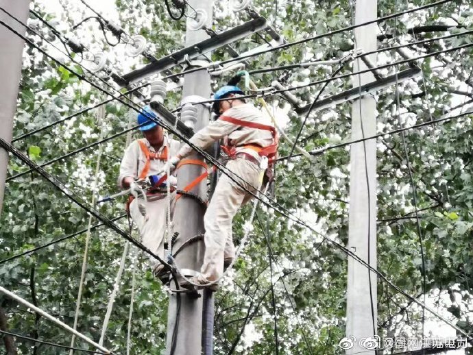 【58年大樹(shù)砸斷線(xiàn),奮力搶修保供電】8月1日,沛縣鹿樓鎮(zhèn)鴛樓高莊、丁莊大隊(duì)受局部強(qiáng)風(fēng)暴雨惡劣天氣影響,線(xiàn)路受損嚴(yán)重,國(guó)網(wǎng)沛縣供電公司鹿樓供電所員工第一時(shí)間趕到現(xiàn)場(chǎng),并根據(jù)搶修預(yù)案,積極清理通道,搶修受損線(xiàn)路,及時(shí)消缺安全隱患,確保該地區(qū)居民正常用電。 ????