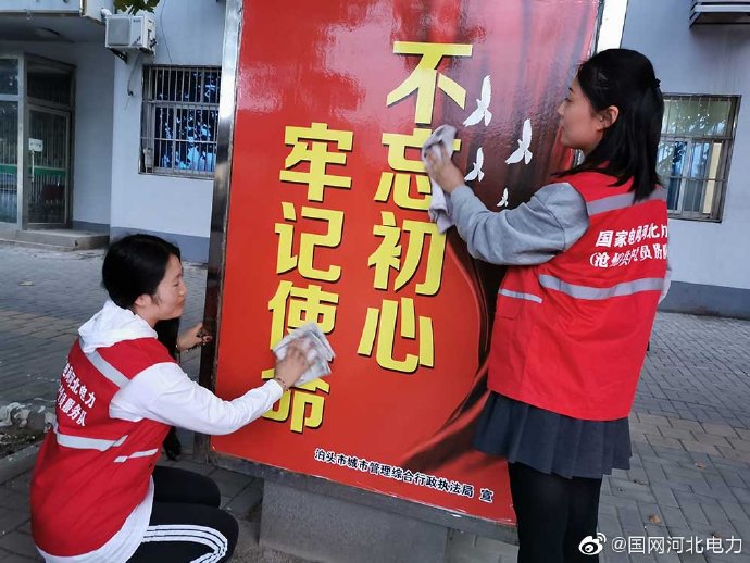 文明在哪里呀,文明在哪里?文明就在我們的點(diǎn)滴行動(dòng)里。10月23日,國網(wǎng)泊頭市供電公司組織志愿者身體力行創(chuàng)文明城市,不怕臟不怕累,認(rèn)真擦拭路牌,張貼公益廣告,用實(shí)際行動(dòng)踐行生態(tài)文明建設(shè),彰顯電力之光。