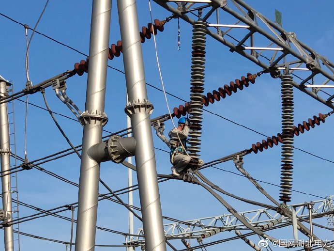 6月1日,國網湖北檢修公司荊門運維分部雙河變電站運維人員對懸式絕緣子進行清掃、搖測,對支柱瓷瓶進行停電水沖洗,像呵護自己的孩子一樣,給設備做了一次全面清潔。