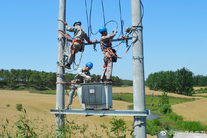 5月22日,在老河口市孟樓鎮(zhèn)楊崗村,來自國網(wǎng)老河口市供電公司工程一部的施工人員為楊崗村泵站架設(shè)一臺80千伏安的抽水專用變壓器,并完成700米專線的架設(shè),滿足楊崗村500畝稻田的灌溉用電需求。