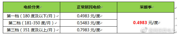 取消階梯優(yōu)惠:在采暖期(當年11月1日至次年3月31日)內用戶的執(zhí)行電價由階梯電價升級為僅執(zhí)行居民階梯第一檔優(yōu)惠電價0.4983元/度。