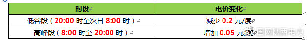 在采暖期內,峰段8:00時至20:00時(共12小時),在居民階梯第一檔基礎上加價0.05元/度,谷段每日20:00時至次日8:00時(共12小時),在居民階梯第一檔基礎上降低0.2元。白天(高峰段)用電只要不超過晚上(低谷段)用電的4倍,電價均能降低。