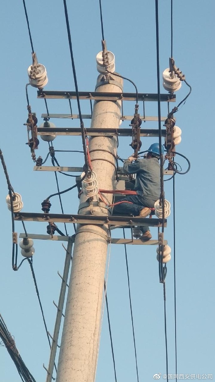 【不畏艱辛忙供電】11月3日,藍(lán)田縣華胥鎮(zhèn)152胥二線B相高壓刀閘至開關(guān)引線過(guò)負(fù)荷燒斷,導(dǎo)致線路停電。? 國(guó)網(wǎng)藍(lán)田縣供電公司運(yùn)檢班立即組織搶修,最大限度減少停電時(shí)間,讓客戶用上放心電。