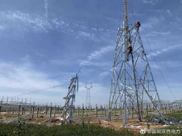 【遷改金鋁線路支持公路建設(shè)】8月27日,國網(wǎng)銅川供電公司在印臺區(qū)雷家溝進行110千伏金鋁ll回線路31和l回32號新塔組立,支持陜西省重點工程――合鳳高速公路雷家溝立交橋建設(shè)。為了確保途徑合鳳高速公路銅川雷家溝立交橋過往車輛安全,8月初,110千伏金鋁雙回線路5基鐵塔基礎(chǔ)開挖,制作,27日,陸續(xù)開始金鋁雙回線路5基新塔組立,為合鳳高速公路2020年建成通車,做出貢獻。
