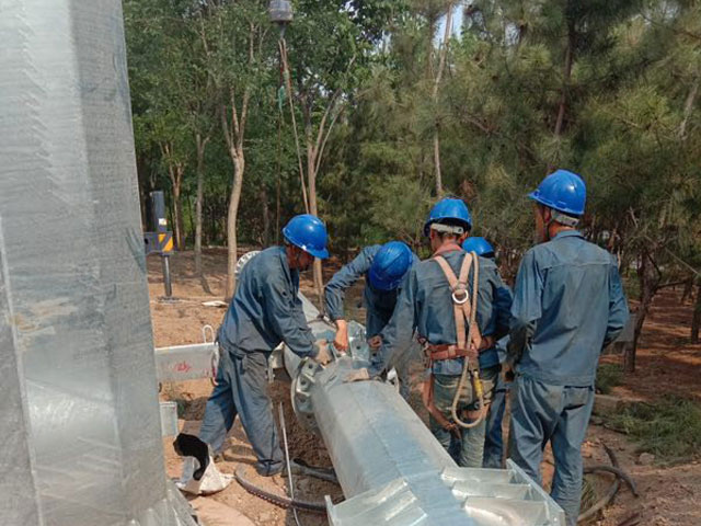 陵城區(qū)供電公司開展110千伏真卿線組塔工作