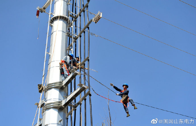 【秋意濃忙施工 可靠供電有保障】10月23日,在10千伏公社線鐵塔組立施工現(xiàn)場,國網(wǎng)青州市供電公司員工登高作業(yè)“各顯身手”,與濃濃秋意構(gòu)成一幅別樣美景。施工現(xiàn)場,嚴(yán)格標(biāo)準(zhǔn)化規(guī)范施工,嚴(yán)抓工期,全力打造堅(jiān)強(qiáng)電網(wǎng)。 ????